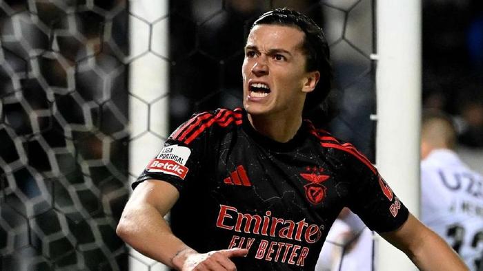 在里斯本的前几个月,卡雷拉斯仍游离在主力之外,直到布鲁诺・拉热接任主帅,他才抓住机会。2024 年 11 月,他一周内连进两球:对阵法伦斯的左脚抽射、4-1 大胜波尔图的右脚破门,彻底坐稳主力。